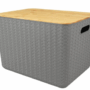ตะกร้าผ้าเหลี่ยมฝาไม้ PLIM GREYRY SIZE L สีเทา
