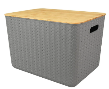 ให้คุณจัดเก็บผ้าหรือสิ่งของเครื่องใช้ต่าง ๆ ได้สะดวกยิ่งขึ้น ด้วยตะกร้าเหลี่ยมฝาไม้จาก PLIM รุ่น GREYRY ผลิตจากพลาสติกที่มีคุณภาพดี มาพร้อมฝาปิดทำจากไม้ และการดีไซน์ลายตะกร้าเสมือนตะกร้าสาน ที่ช่วยเติมเต็มบรรยากาศความอบอุ่นให้กับบ้านได้อย่างลงตัว สามารถใช้จัดเก็บผ้าแห้งอย่าง ผ้าเช็ดหน้า, ผ้าเช็ดมือ หรือจะปรับใช้เป็นที่เก็บอุปกรณ์เครื่องใช้ต่าง ๆ ได้หลากหลายตามต้องการ