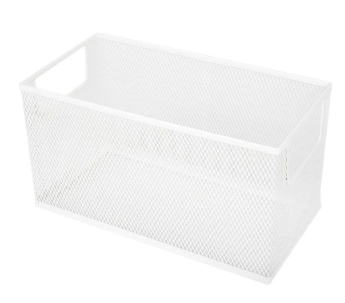 ตะกร้า Mesh ทำจากเหล็กพ่นสี Epoxy สีขาว ตะกร้าตาข่ายช่วยระบายอากาศได้ดี เหมาะสำหรับใช้เก็บหัวหอม แครอท มะเขือเทศ ฯลฯ หรือสำหรับการจัดเก็บอุปกรณ์งานครัว ขวดเครื่องปรุง ซอสต่าง ๆ สามารถวางซ้อนได้ มองเห็น และหาสิ่งของที่ต้องการใช้สะดวก ทำให้ครัวของคุณเป็นระเบียบ เรียบร้อย สะอาดตา